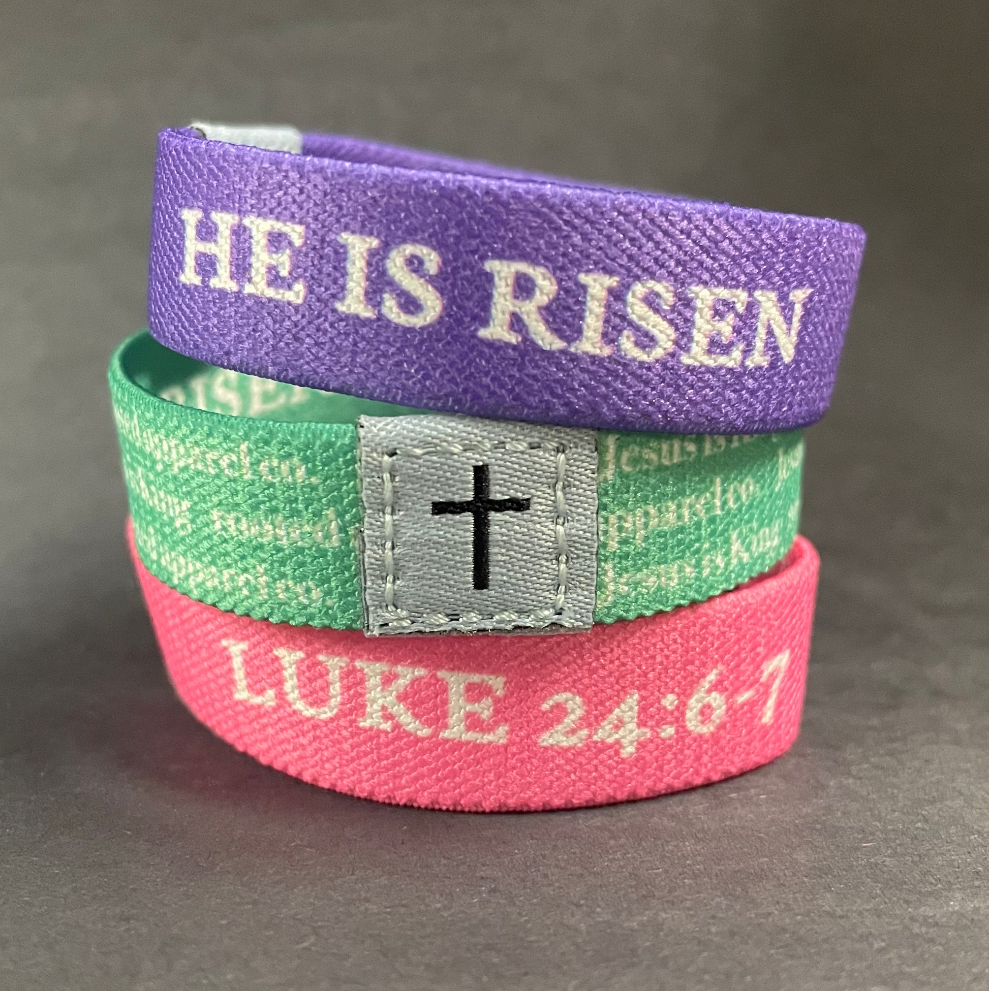 JA Great quality bracelets in fun colors with a reminder of what God did for us!